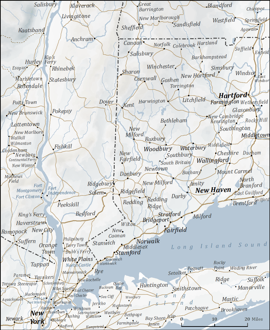 New York, White Plains, Fishkill, Danbury, and western Connecticut.